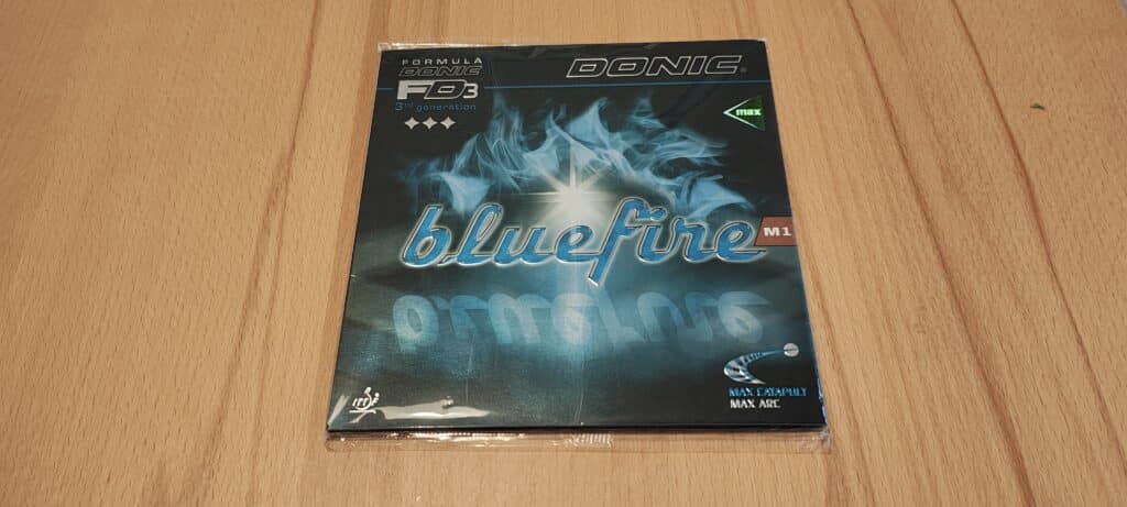 Die Bluefire M-Serie ist eine der beliebten Belagreihen von Donic. Viele Spieler, auch in unserem Verein, spielen auch heute, über 10 Jahre nach der Einführung der Reihe, mit Bluefire Belägen. Der Bluefire M1 ist nach dem Bluefire M1 Turbo der zweitschnellste und zweithärteste Belag der Reihe.