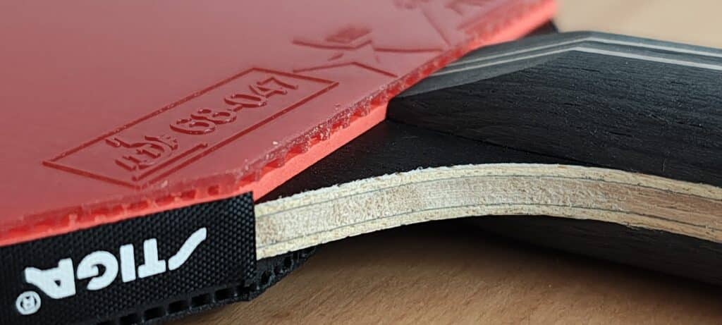 Auch die Beläge sind anders. Bei diesem Schläger befinden sich auf beiden Seiten des Holzes ittf-zugelassene Stiga STAR5-Beläge. Die Dicke des Schwamms beträgt 2,0 mm.